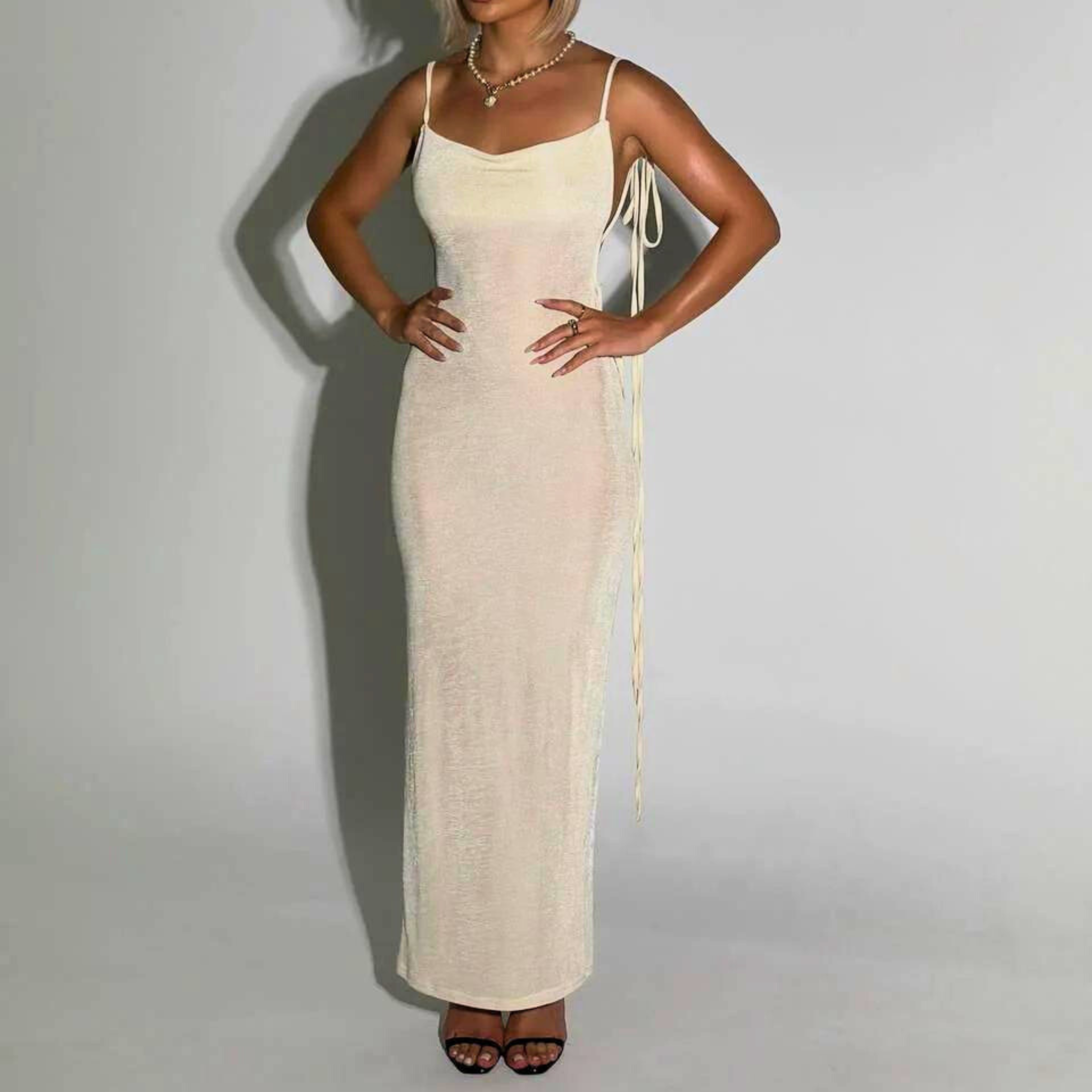 The drawstrings ensure a perfect fit, while the flattering silhouette hugs your figure in the most flattering way. Add your favourite pair of heels and you're ready to shine like never before!