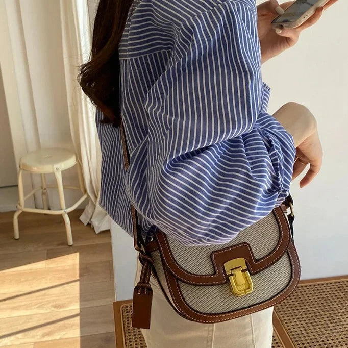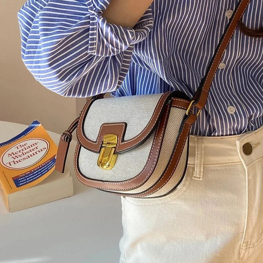 With its striking contrast panels and durable canvas construction, this bag offers a fresh take on classic aesthetics. Whether you sling it over your shoulder or wear it as a crossbody, the versatility of this bag suits any occasion.